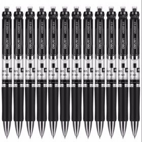 得力(deli)0.5mm按動中性筆辦公簽字筆 子彈頭黑色12支/盒 辦公用品S01
