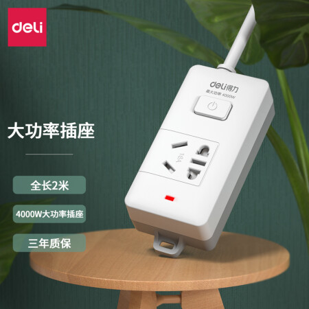 得力 deli 16A大功率插座 4kw空調(diào)插座/插排/插線板/排插/接線板 單孔 總控開關(guān) 18277-02(送10A插頭)