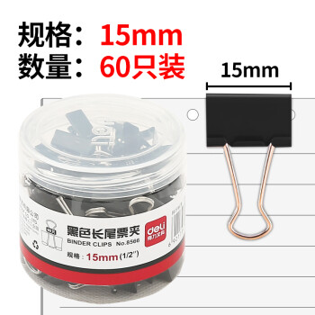 得力長尾夾黑色票夾大號中號小號燕尾夾 鐵夾子小夾子文具整理夾盒裝蝴蝶夾金屬鳳尾夾 15mm(60只/筒)8566