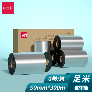 得力 deli 90mm*300m熱轉(zhuǎn)印條碼打印機(jī) 標(biāo)簽機(jī)通用型碳帶 蠟基碳帶81523(6支裝)