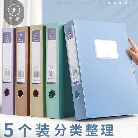 簡繁 55mm莫蘭迪A4粘扣檔案盒5個(gè)裝 文件收納資料盒塑料整理盒辦公用品 藍(lán)+紫+黃+綠+桔